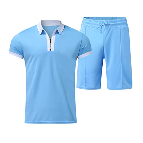 Estate set da uomo completo tuta da calcio regalo originali Patchwork traspirante casual estivo completo di uomini maglietta + pantaloncini taglia grande due pezzi tuta tuta, blu, S