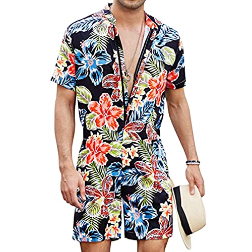 Uomo Estate Fashion Jumpsuit Leisure Zipper Non Si Trova Digital Printing Beach Jumpsuit Casual Jumpsuit Male Wedding Prom Suit Tute (a-Black, M)