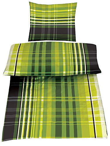 Estate, hauchduenne, kuehlende biancheria da letto in microfibra verde a quadretti 1 X 135 X 200 copripiumino + 1 X 80 X 80 cuscino con cerniera