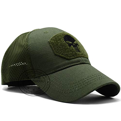 YLWL Estate Punisher Skull Multicam Operatore cap Uomini Mesh Equipaggiata Tactical Special Force cap Hat SWAT Sniper Posto cerotto OD (Color: Skull Camo Green)