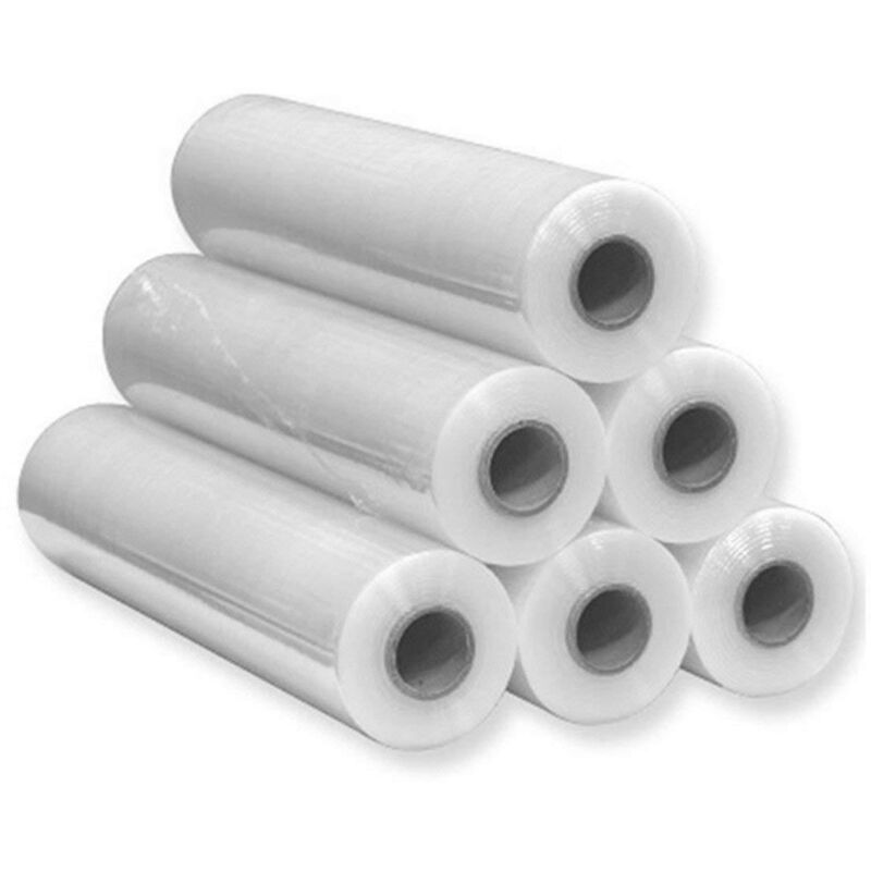 6 rotoli film estensibile colore Bianco ALTEZZA DEL ROTOLO 50 CENTIMETRI PESO KG 2,300 SPESSORE 23 Micron IL PRODOTTO IDEALE PER: PROTEGGERE I VOSTRI OGGETTI DURANTE SPEDIZIONI, TRASLOCHI FASCIARE QUALSIASI BANCALE-PALLET