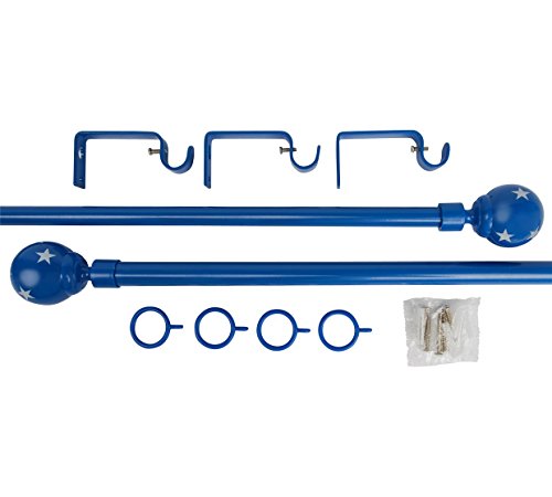 Asta estensibile per tenda a forma di stelle, con anelli, elementi decorativi e accessori.
