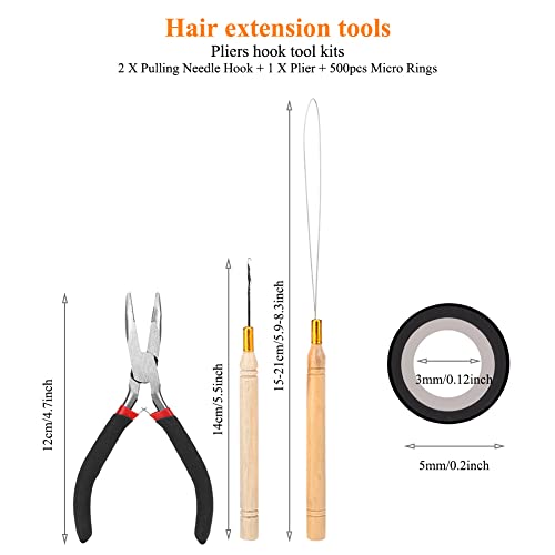 COSA OTTERRAI ⭆ Un set di strumenti per l'estensione dei capelli include ganci di trazione, pinze e una confezione di 500 micro-anelli in silicone per estensioni complete dei capelli per estensioni complete, adatte alla maggior parte delle acconciature.