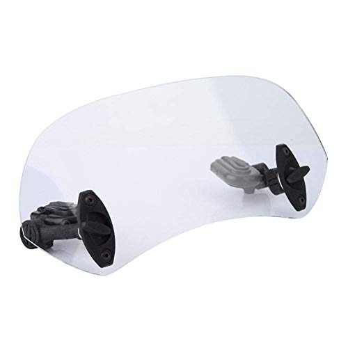 Design regolabile Parabrezza regolabile, fissato sopra il parabrezza originale, adatto a quasi tutte le biciclette con parabrezza. Lo schermo è dotato di bracci di estensione e doppie cerniere per fornire una più ampia gamma di movimento e regolazione. Un set di hardware di montaggio è incluso per facilitare l'installazione.