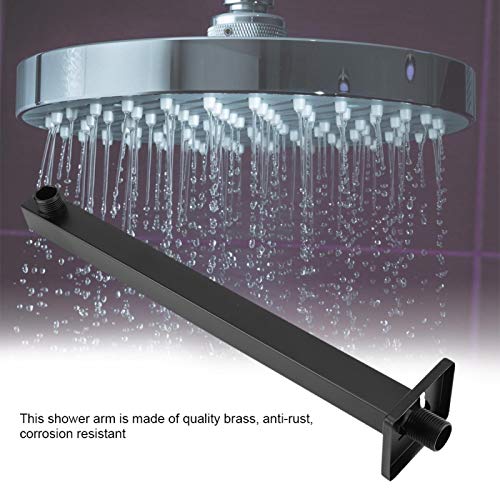 Estensione per Soffione Doccia, Braccio Doccia a Pioggia da 14 Pollici con Braccio Doccia Flangiato in Acciaio Inossidabile a Parete, Quadrato Dritto, Nero Opaco