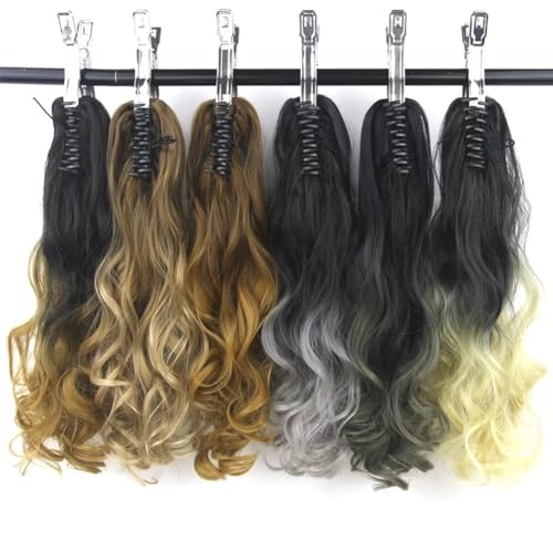 ILUU Estensioni a coda di cavallo sintetica ondulata lunga Clip ad artiglio riccio nelle estensioni dei capelli a coda di cavallo (24", 130 g, da #1B nero naturale a #BUG rosso scuro)