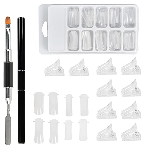 Kit di Estensioni per Unghie, 1 Pennello per Unghie, 100 Unghie Finte, 10 Clip per Unghie Trasparenti, Pinzette per Unghie, Unghie Finte Trasparenti, Punte per Unghie in Poligel, Punte per Unghie