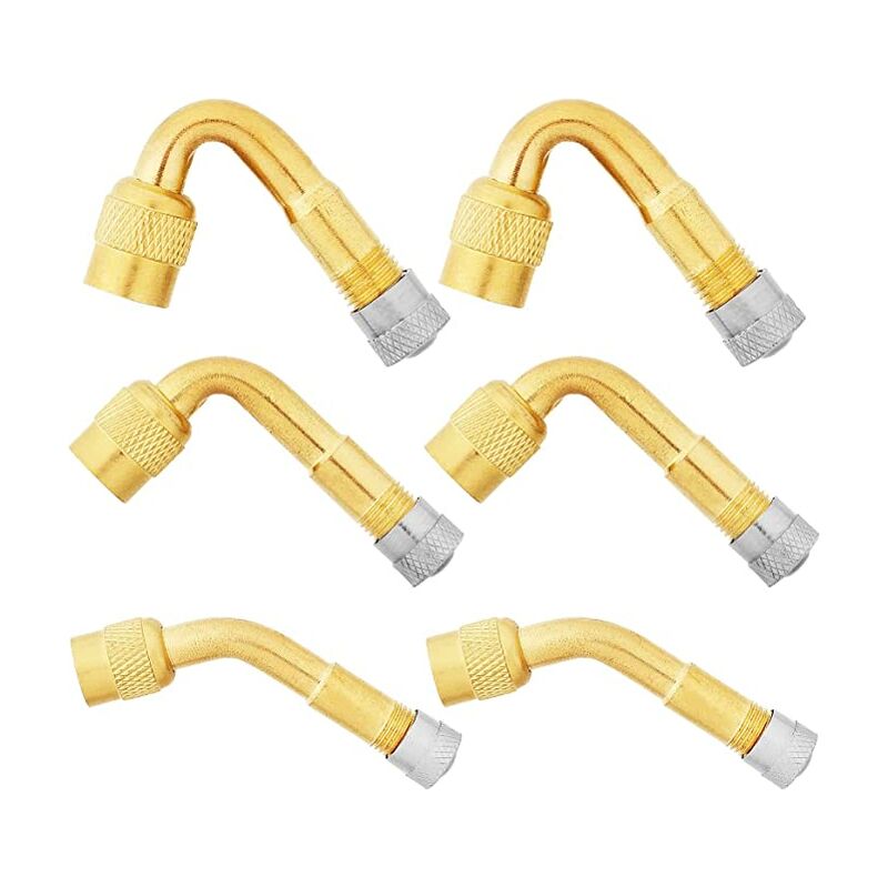 Estensore della valvola del pneumatico - L'estensore della valvola include tre estensori angolari di 45 gradi, 90 gradi e 135 gradi, questi estensori della valvola del doppio pneumatico sono adatti per la maggior parte delle autovetture, biciclette, camion, motocicli e camion, veicoli ricreazionali con pneumatici standard valvole. 【Qualità e durata】Realizzato in ottone con coperchio antipolvere in metallo, durevole e di lunga durata. 【Eccellenti prestazioni di tenuta】 L'estensore della valvola del pneumatico è dotato di anello di tenuta in gomma e coperchio della valvola in metallo, che può controllare la pressione dei pneumatici e gonfiare i pneumatici doppi. La cartuccia della valvola integrata consente gonfiaggio e sgonfiaggio facili e veloci. 【Facile da usare】 La parte inferiore dell'estensione della valvola in ottone può ruotare liberamente per una facile installazione. Il nucleo integrato consente sia l'inflazione che la deflazione. Basta rimuovere il coperchio esistente e