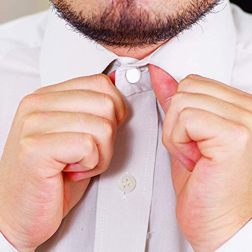 Gli estensori del collare sono un ottimo modo per aiutare a espandere la taglia della camicia di circa ½ collo. Queste estensioni per colletto con bottoni bianchi si abbinano ai bottoni della camicia o scompariranno sotto la cravatta