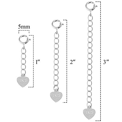 Estensori per collane, ALEXCRAFT 3 Pez Catena di estensione del braccialetto della collana della catena di estensione della catena dell'argento sterlina 925 per la creazione di gioielli (123 inch)