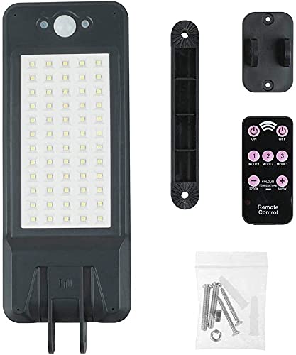 Luci da esterno giardino solari 60 LED Solar PIR Motion Sensor Lampione stradale con telecomando | 3 modalità di illuminazione Lampada da parete da giardino impermeabile IP 65 per patio cortile garage