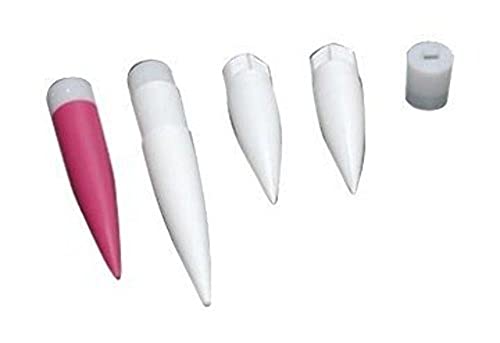 La confezione di accessori Estes include un cono per il naso è la sezione principale del rocket, con il lavoro di ridurre la resistenza aerodinamica. Tre coni sono 2 pezzi, due sono 1 pezzo (tutti con punte affusolate). Plastica bianca modellata (2 pezzi, due, 1 pezzo, due);