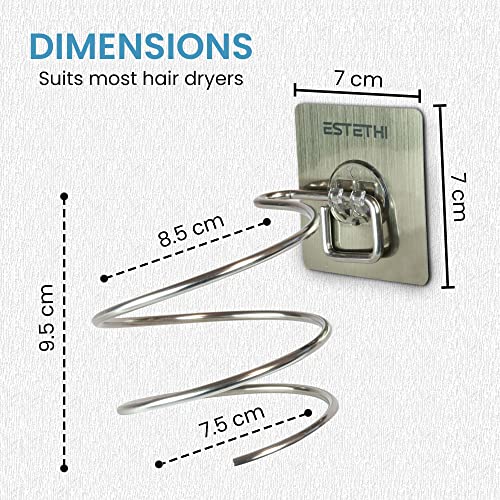 ESTETHI Porta Phone da Muro per Bagno, Supporto Asciugacapelli da Parete, Supporto Phon Autoadesivo, Acciaio Inossidabile, incl. 2X Cuscinetti Adesivi
