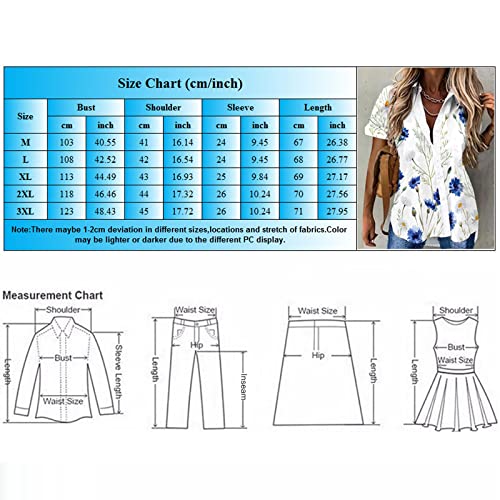 Top in seta estiva da donna, maniche corte, scollo a V, stampa floreale, camicetta con bottoni, top casual, camicetta da donna con bottoni automatici, Blu, XXL