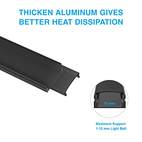 Profilo in alluminio spesso di colore nero opaco: il profilo in alluminio è un solido estruso a forma di U, spesso canale in alluminio che aiuta a diffondere il calore generato dalla luce di lavoro. Permette alla striscia LED di durare più a lungo.
