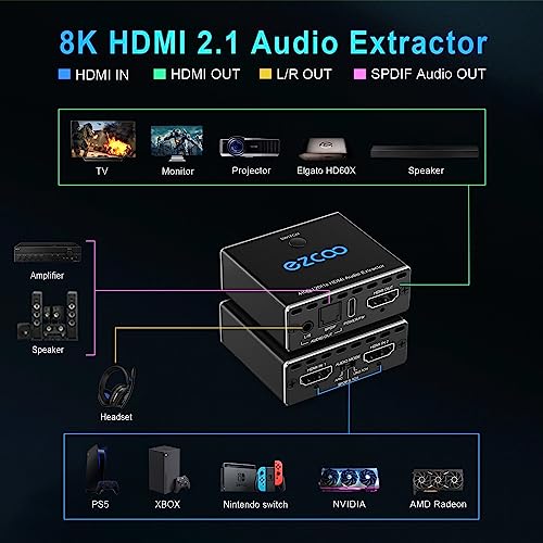 ✨【Estrattore audio HDMI 8K - Ampia compatibilità】: Questo estrattore audio HDMI a 2 porte è compatibile con alcuni dispositivi HDMI come Amazo