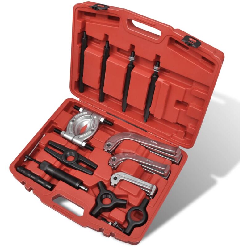 Questo estrattore e separatore idraulico � perfetto per la manutenzione dei veicoli ferroviari, installazioni meccaniche, la manutenzione delle miniere e delle fabbriche attraverso la rimozione della carrucola, dei cuscinetti a sfera, ingranaggi ed altre componenti. Questo set di attrezzi estrattore e separatore idraulico include: 1 x separatore cuscinetti a sfera, 1 x asta, 1 x adattatore centro, 1 x testa tripla, 1 x testa doppia, 3 x 4� estrattore piede, 3 x 6� estrattore piede, 1 x rostro, 1 x 2 bastone estensione, 1 x 4 bastone estensione, 4 x 8 bastone estensione, 1 x 10 rostro idraulico e 3 x viti. La scatola compartimentata � progettata per durare nell'uso quotidiano e per trasporto facile. Adatto per tirare i cuscinetti a sfera di dimensioni dei veicoli commerciali da � 75 - 105 millimetri Il set di strumenti comprende: 1 x � 75 - 105 millimetri separatore cuscinetto a sfera 1 x asta 1 x Adattatore Centro 1 x Testa Tripla 1 x Testa doppia 3 x 4 estrattore piede 3 x 6