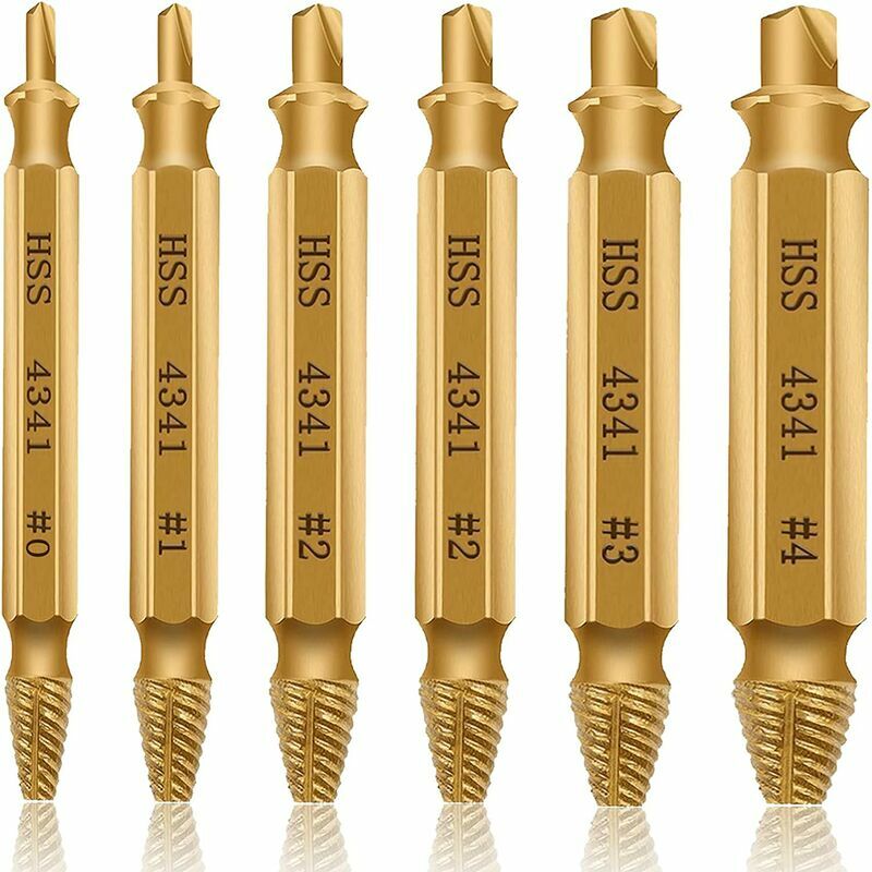 6 pezzi - Funziona su quasi tutte le dimensioni delle viti - L'estrattore per viti in set da 6 pezzi funziona con la punta più comunemente usata e qualsiasi estrattore per viti, quale vite o bullone. Extra n. 2 per il backup compatibile utilizzato di frequente 【Facile da usare】Utilizzare una punta da trapano per praticare un foro profondo nella testa della vite, quindi invertire l'estrattore della vite in senso antiorario nella vite danneggiata finché non si libera li> 【Qualità Premium】Realizzato da HSS 4341#, la durezza è 62-63 HRC per prestazioni di lunga durata 【Efficiente】Kit di estrazione della vite ad alta durezza, puoi rimuovere facilmente la viscosa arrugginita e rotta avvita in pochi secondi 【Include custodia】 Viene fornito in una scatola nera compatta e attraente per una comoda conservazione e un regalo di buon gusto. < b>CARATTERISTICHE: Dimensioni: 88mm*62mm*18mm Peso: 85g Colore: Oro< /p> Materiale: HSS 4341# Dimensione: 0 # Rimuovi diametro 2~3mm 1 # Rimuovi diametro