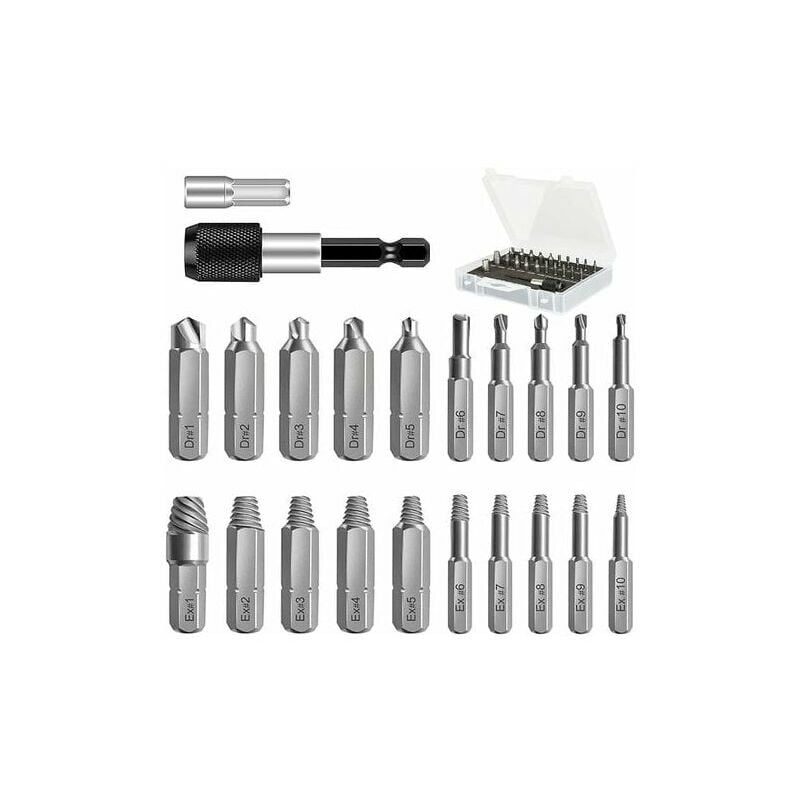 Materiale Premium - Kit estrattore per viti Diyife realizzato in HSS ad alta durezza, resistente alla ruggine, conservante. Portatile per prestazioni di lunga durata. Il kit include 10 punte da trapano (Dr #1-#10), 10 estrattori (EX #1-#10), 1 portapunte esteso e 1 adattatore per presa 【22 pezzi】 Funziona con qualsiasi trapano e qualsiasi punta da trapano. #39;