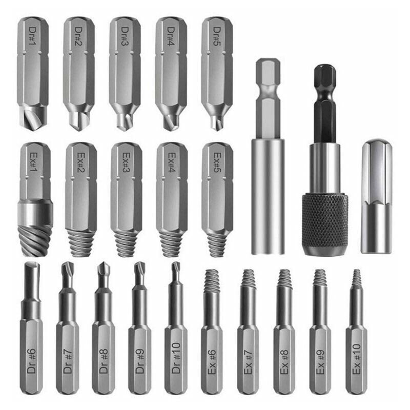Misure multiple - : il kit estrattore per viti danneggiato è composto da 22 pezzi, tra cui punte da trapano n. 1-10, estrattori n. 1-10, adattatore per presa e portapunte. prolunga magnetica. Adatto per la maggior parte delle viti come bulloni esagonali, bulloni ritardati, viti per macchine, viti per legno, viti per lamiera e altre viti. 【Qualità Premium】: il kit dell'estrattore per viti rotte è realizzato in 4341 di alta qualità acciaio rapido, che è ad alta durezza e durevole, che assicura che i trapani e gli estrattori siano abbastanza resistenti e durevoli da rimuovere le viti danneggiate che erano bloccate nei tuoi dispositivi. 【Portatile】: viene fornito con una cassetta degli attrezzi, i 22 pezzi del kit sono riposti in una piccola scatola, facile e comoda da trasportare. La grande portabilità del nostro kit ti consente di viaggiare leggero per lavorare. 【Applicazione versatile】: con questo kit di viti danneggiato, puoi svolgere molti lavori professionali, come decorazione