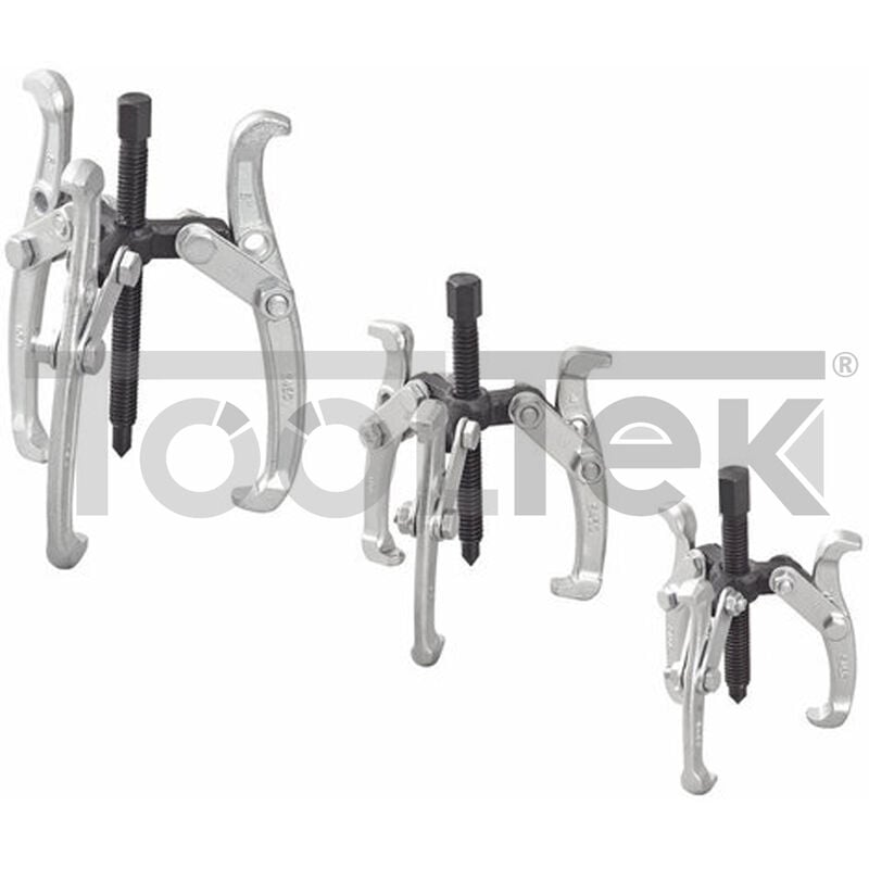Tris di estrattori per cuscinetti di diverse misure. 3 braccia che si agganciano al corpo da estrarre.MISURE: 75 - 100 - 150 mm Ottimi sia per uso professionale che per il fai da te.Costituiti da una vite centrale che scorre tramite avvitamento su una piastra, la quale è munita di 3 bracci che fissano o agganciano al corpo da estrarre.Le braccia dell'estrattore devono essere poste correttamente sul corpo da estrarre e la vite centrale deve essere ruotata in modo da premere contro l'asse su cui tale corpo è vincolato tramite accoppiamento. Prodotto di qualità N.B. ATTENZIONE PER LE ISOLE MINORI E LOCALITA' DISAGIATE C'E' UN SUPPLEMENTO SULLE SPESE DI TRASPORTO CHIEDERE INFO. LA FATTURA VIENE EMESSA PER ACQUISTI SUPERIORI A 20