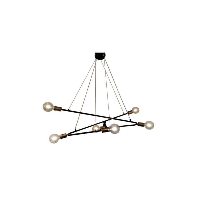 Estrella 6 appesa nera - questo è uno dei nostri nuovi prodotti, creato per coloro che amano l'atmosfera industriale e cruda. Vi presentiamo l'illuminazione su una struttura in metallo nero con barre, con un cavo piuttosto lungo ma regolabile. Questa illuminazione ha 6 sorgenti luminose. Questa lampada insolita e interessante susciterà sicuramente l'ammirazione dei tuoi ospiti. Grazie ad esso otterrai una luce meravigliosamente diffusa sul tavolo della sala da pranzo o del soggiorno. Come accennato in precedenza, il prodotto si adatta perfettamente allo stile industriale, che si adatterebbe perfettamente all'ambiente in mattoni. D'altra parte, un modello di illuminazione del genere romperebbe originariamente l'arredamento lussuoso del soggiorno. Questa lampada contiene anche elementi dorati, che ne aumentano ulteriormente l'efficacia Dimensioni: 48 x 110 x 127 cm Materiale principale: Metallo Materiale aggiuntivo: vetro Tipo di portalampada: E27 Numero di sorgenti luminose