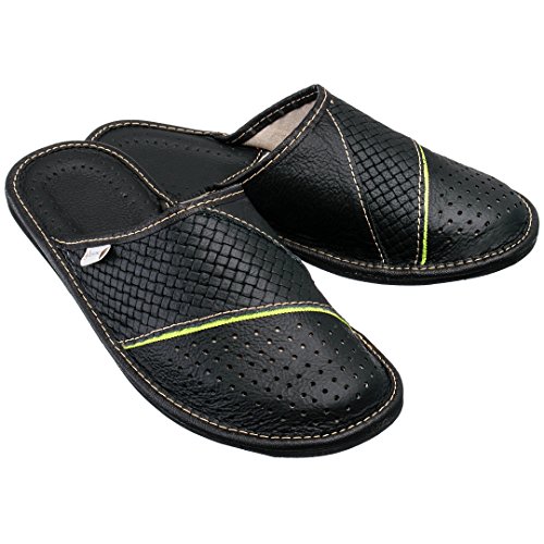 ESTRO Pantofole Ciabatte Uomo Casa Pantofola Ciabatta Vera Pelle M66 (50 EU, Nero, numeric_50)