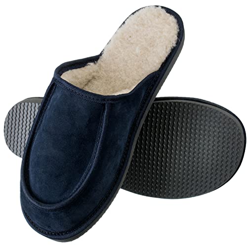 ESTRO Pantofole Uomo in Pelle Scamosciata Naturale Pantofole Nonno Ciabatte Uomo Casa Suole Antiscivolo in Memoria di Schiuma F18 (Blu Scuro 41 EU)