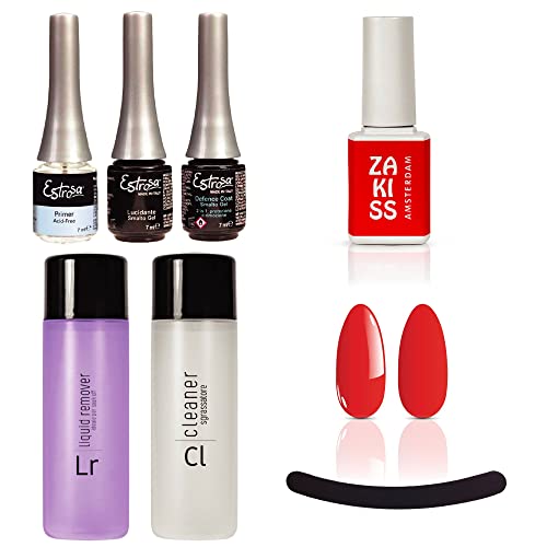 ESTROSA KIT COMPLETO SEMIPERMANENTE UNGHIE SMALTO - BASE PRIMER + BASE DEFENCE COAT + LUCIDANTE GLOSS + CLEANSER REMOVER 125ml + Gel Polish n 30 Amsterdam 10ml