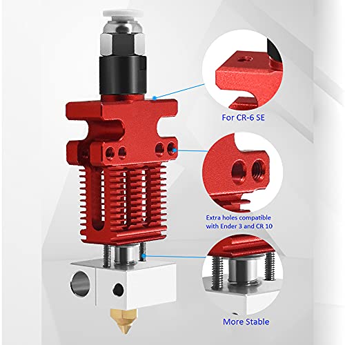 Questo hotend è direttamente compatibile con stampanti 3D Creality CR6 SE, CR-6 MAX e CR-5 PRO. Può essere utilizzato anche per stampanti serie Ender 3 e CR10 con 2 fori extra, ma è necessario rilivellare il letto prima della stampa.