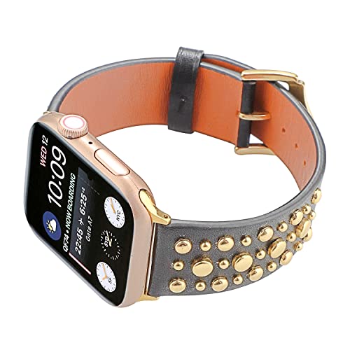 ESTUYOYA - Cinturino in pelle compatibile con Apple Watch 41-40-38mm Series 7/6 / 5/4 / 3/2 / 1 / SE Bracciale in vera pelle firmata Chiusura con fibbia in acciaio inossidabile - Grigio