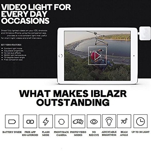 Il primo innovativo flash esterno l'aiuto del flash led migliorare notevolmente la qualità di foto e video, si prende con il vostro iPhone, iPad, Android o Windows Phone in situazioni di scarsa illuminazione