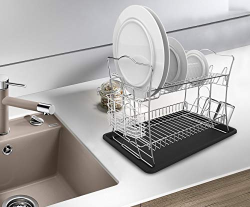 ESYLIFE, scolapiatti a 2 ripiani con vaschetta raccogli-gocce e scomparto porta-utensili, finitura cromata