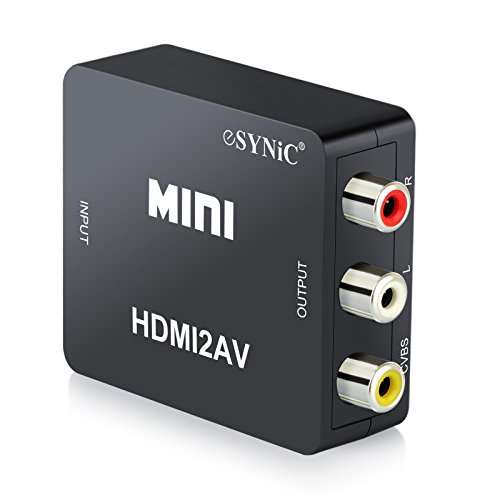 ESYNiC 1080P HDMI Segnale Digitale ad AV Composito 3 RCA CVBS Convertitore Video Audio per Blu Ray SKY HD VHS VCR DVD DVR Lettore - Nero