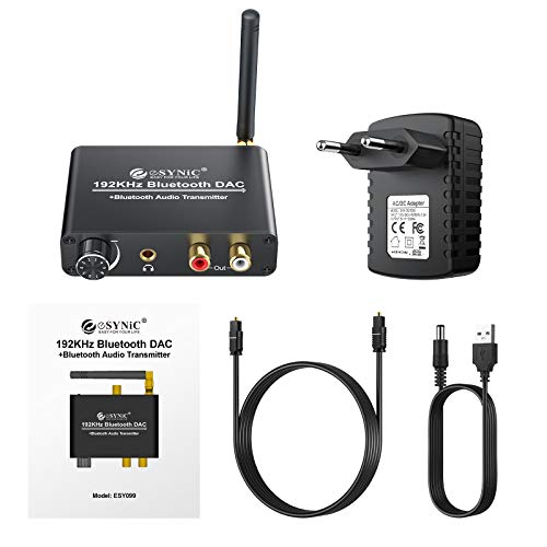 ESYNiC DAC 192KHz con Bluetooth 5.0 Trasmettitore per TV Cuffie Altoparlante Bluetooth Convertitore Audio Digitale ad Analogico Volume Regolabile Supporta aptX Bassa Latenza con Alimentatore