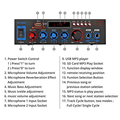 ESYNiC 800W Mini HiFi Amplificatore Audio Bluetooth per Auto con Alimentatore 12V/220V Amplificatore di Potenza Digitale con Telecomando Amplifier Stereo USB Mic FM SD TF con LED Display per Auto Casa