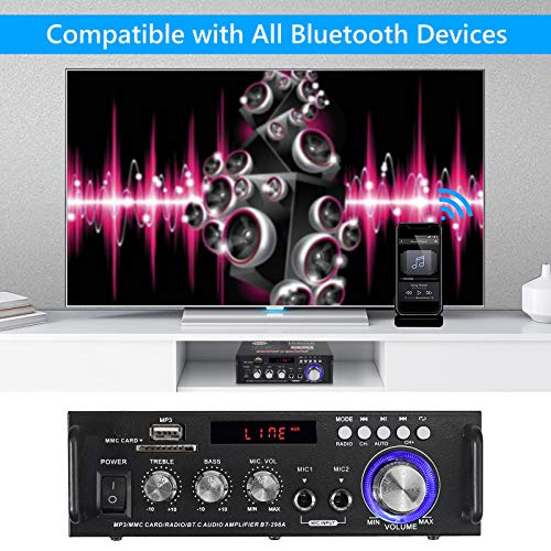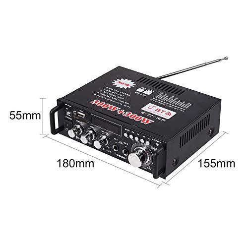 ESYNiC 300 W + 300 W Mini Amplificatore Audio Stereo Bluetooth con Telecomando HiFi Amplifier Audio Digitale Portatile per Auto Casa Hi-Fi Musica SD USB FM 12V / 220V