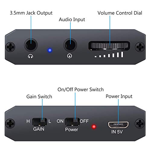 Mini HiFi Amplificatore per Cuffie, 3.5mm Entrata e Uscita Audio, Ottima Qualità, con Connettore Placcato Oro, SNR>100Db e THD+N 0.0003%, Rendendo Possibile la Produzione non Solo di un Suono più Forte, ma di un Suono Stereo più Nitido e Reale senza Distorsioni.