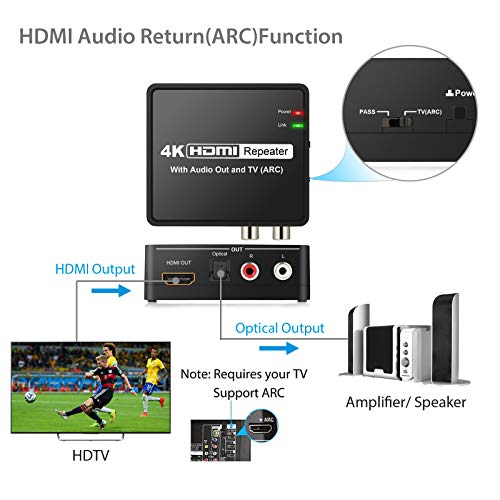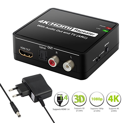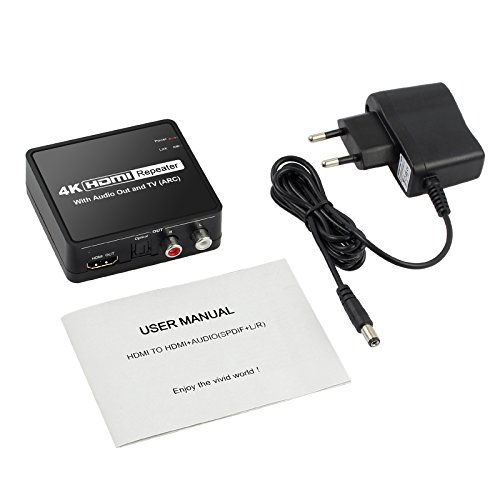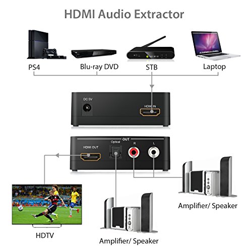 ESYNiC 4K x 2K HDMI Audio Estrattore con Alimentatore - Convertitore Audio HDMI Digitale a Ottico SPDIF Toslink 5.1 e RCA L/R Stereo Analogico Extractor Splitter con ARC e CEC per HD TV e Cuffie