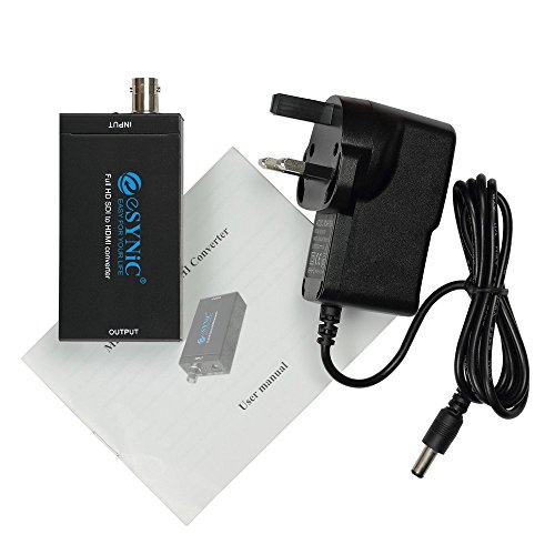 ESynic - Convertitore da SDI a HDMI, Mini 3G, 1080p, adattatore per segnale audio e video HD, supporta il segnale SDI 3G e il segnale SDI HD 1.485G, HD-SDI, SD-SDI e 3G-SDI, perfetto per videocamera, Home Theater HD, proiettore e LCD, con adattatore per spina del Regno Unito