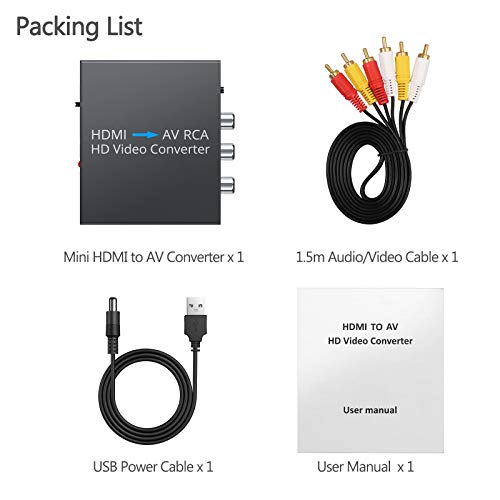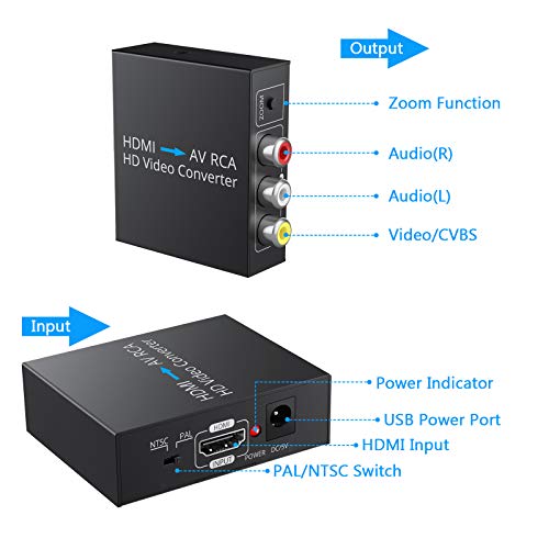 ESYNiC Convertitore HDMI a RCA Adattatore HDMI a AV Convertitore Audio Video 1080P HDMI a AV 3RCA CVBs Composito Supporta PAL NTSC con Cavo Audio/Video e USB Cavo di Alimentazione