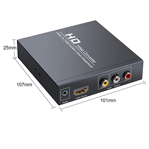 ESYNiC Convertitore HDMI a HDMI + 3RCA CVBS AV e 3.5mm Jack per Cuffie con Alimentatore 1080P Convertitore Adattatore HDMI a RCA AV Composito Video per HDTV DVD PS3 DVR PC Laotop