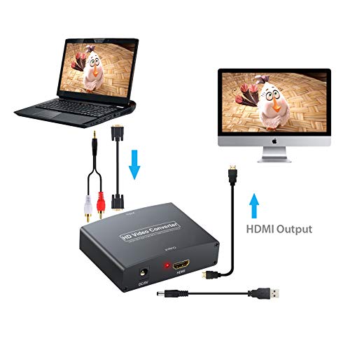 Convertitore Video e AudioVGA+RL/Stereo RCA a HDMI: Il Convertitore Box VGA a HDMI Converte PC VGA e Audio a HDMI, Permettendo la Connessione del PC a 1080p HDTV.