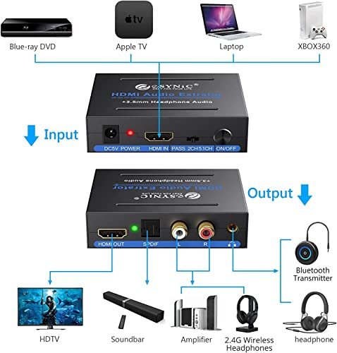 【Ampia Applicazione】Dotato dell'Interruttore ON/OFF per Spegnere il Dispositivo In Modo Conveniente. Funziona bene con Blu-ray DVD Lettore Xbox One SKY HD box PS3 PS4 (Nota: Con 5V USB Cavo Alimentazione, Questo HDMI Estrattore Audio è Bassa-Potenza, Se Voleva Utilizzarlo per Funzionare Normalmente, La Preghiamo di Collegare con 5V 1A Alimentatore).