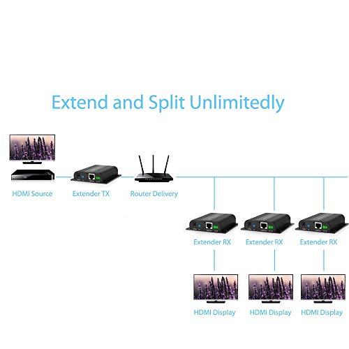 Permette di essere Ricevuto da Router o Commutatore di Rete per la Connessione in Cascata, ed essere usato come il HDMI Splitter ed Extender