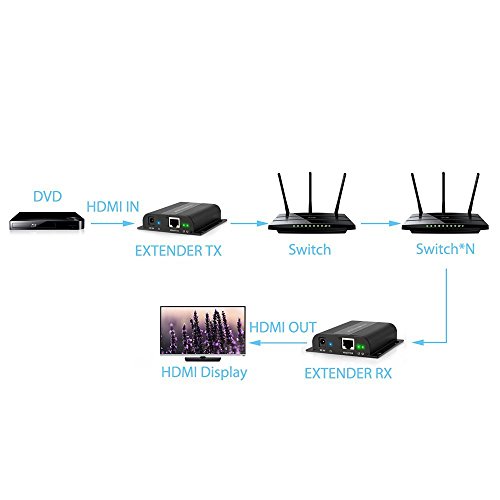 ESynic 120m HDbitT HDMI Extender Ethernet Network Extender Ricevitore 1080P su Singolo RJ45 CAT6/6a/7 Cavo - Si può distribuire da Router o Commutatore di Rete - Solo Ricevitore