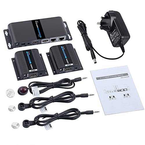 ESynic, ripetitore HDMI con 2 porte HDMI, estende il segnale 1080p fino a 50 m, tecnologia Ultra HD, HDMI Loop Out, funzionamento a infrarossi su cavi singoli RJ45 Cat6 e Cat7, per Sky Box HDTV, PS3, ecc