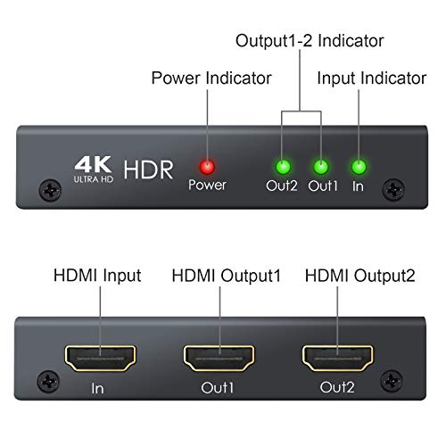 HDMI 2.0 Splitter 1 Ingresso 2 Uscita, HDMI Splitter in Alluminio Distribuisce segnale audio e video da una singola sorgente a due HDMI display contemporaneamente, e crea presentazioni impressionanti ad alta definizione. NESSUN ritardo, NESSUN salto o calo di risoluzione.