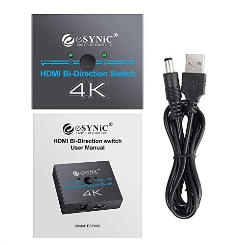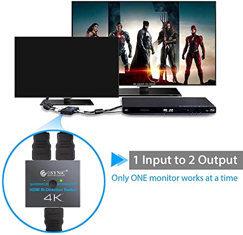 ESYNiC HDMI Switch Bidirezionale 2 Ingresso 1 Uscita o Splitter 1 Ingresso 2 Uscite Supporta 4K 3D con USB Cavo Alimentazione HDMI Switcher per HDTV Blu-Ray Lettore DVD DVR PS4