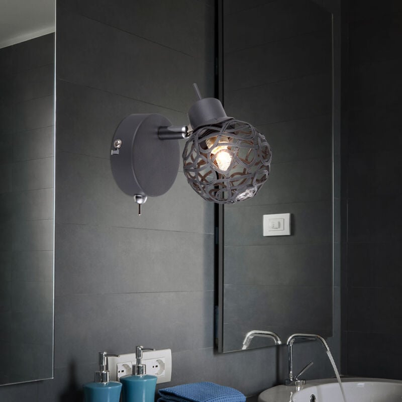 Descrizione Questo faretto da parete di prima classe convince grazie al suo design alla moda e ai materiali di alta qualità. La lampada è circondata da una rete di alluminio metallizzato grigio e ha anche un cristallo acrilico trasparente, che conferisce a questo prodotto un carisma speciale. Il punto luminoso è montato su un gancio grigio, dotato di un interruttore on/off. Nella consegna è inclusa una sorgente luminosa a LED. Lampada dettagli • Tipo di luce: applique • Materiale: alluminio, grigio • Paralume: rete sferica in alluminio, cristallo • Larghezza x altezza x sporgenza in cm: 8 x 13 x 11,5 • Peso: 0,36 kg • Presa: 1x G9 • Lampadina inclusa • Potenza lampada: 1x 4 watt • Flusso luminoso: 1x 400 lumen • Colore della luce: bianco caldo • Alimentazione: 230V, 50Hz Dettagli Lampadine a LED • Tipo di lampadina: LED • Attacco: G9 • Flusso luminoso: 400 lm (lumen) • Consumo energetico: 4 kWh/1000h • Temperatura colore: 3000K (Kelvin) • Colore della luce: bianco caldo • Consumo